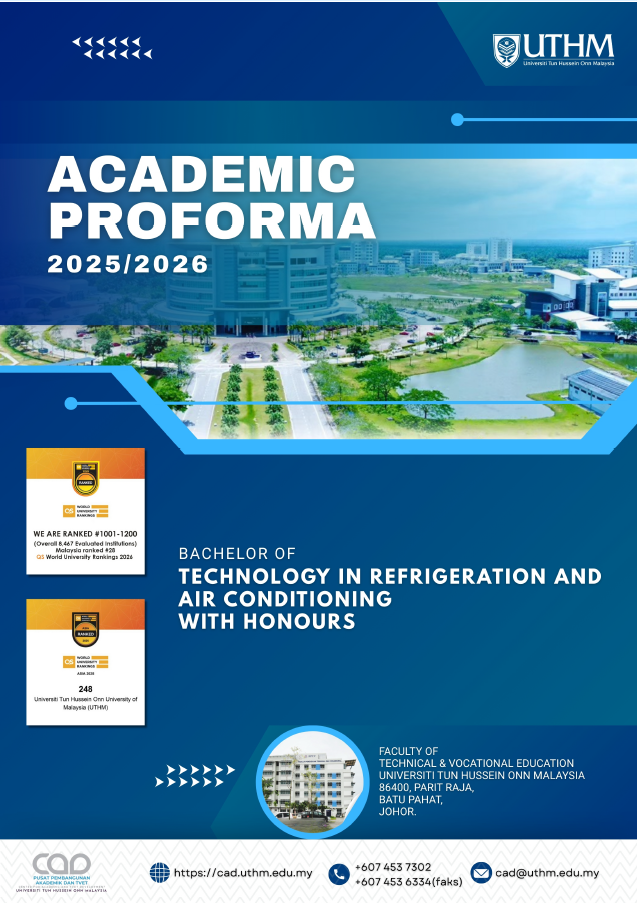 Graduates have career opportunities in the private and public sector, particularly in the field of refrigeration and air conditioning. The graduates have career opportunities as a HVAC (Heating ventilation and air conditioning) engineer in the private sector and also have the potential to become entrepreneurs in related fields. Graduates also have the opportunity to continue their studies at postgraduate level in areas related to technical and vocational education through programmes such as Master of Technical Education (Mechanical Engineering), Master of Technical and Vocational Education and equivalent programmes.