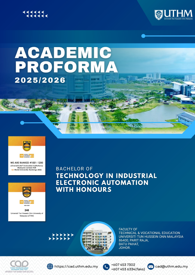 Graduates have career opportunities in the private and public sectors, particularly in Electronic Automation. The graduates have career opportunities as an Electronic Automation engineer in the private sector and also have the potential to become entrepreneurs in related fields. Graduates also have the opportunity to continue their studies at the postgraduate level in areas related to technical and vocational education through programmes such as Master of Technical Education (Electronic Engineering), Master of Technical and Vocational Education and equivalent programmes.