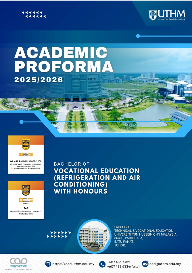 These are the PEOs for Bachelor Degree in Vocational Education (Refrigeration and Air Conditioning) with Honours is to produce professional instructors in the field of TVET that who are: